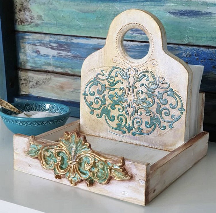Оформляла крышку для плетённой шкатулки . Очень красивый орнамент под старину. Такой благородный рисунок!! Один из моих любимых!! Шучу, они все Крутые!! Удобные в использовании, мыть легко, шикарная упаковка , в которой их можно безопасно хранить! Я в восторге от трафаретов Кристины!! Именно по этому трафарету есть предложение сделать серию , размером +5 , +10 см побольше))