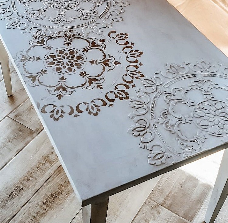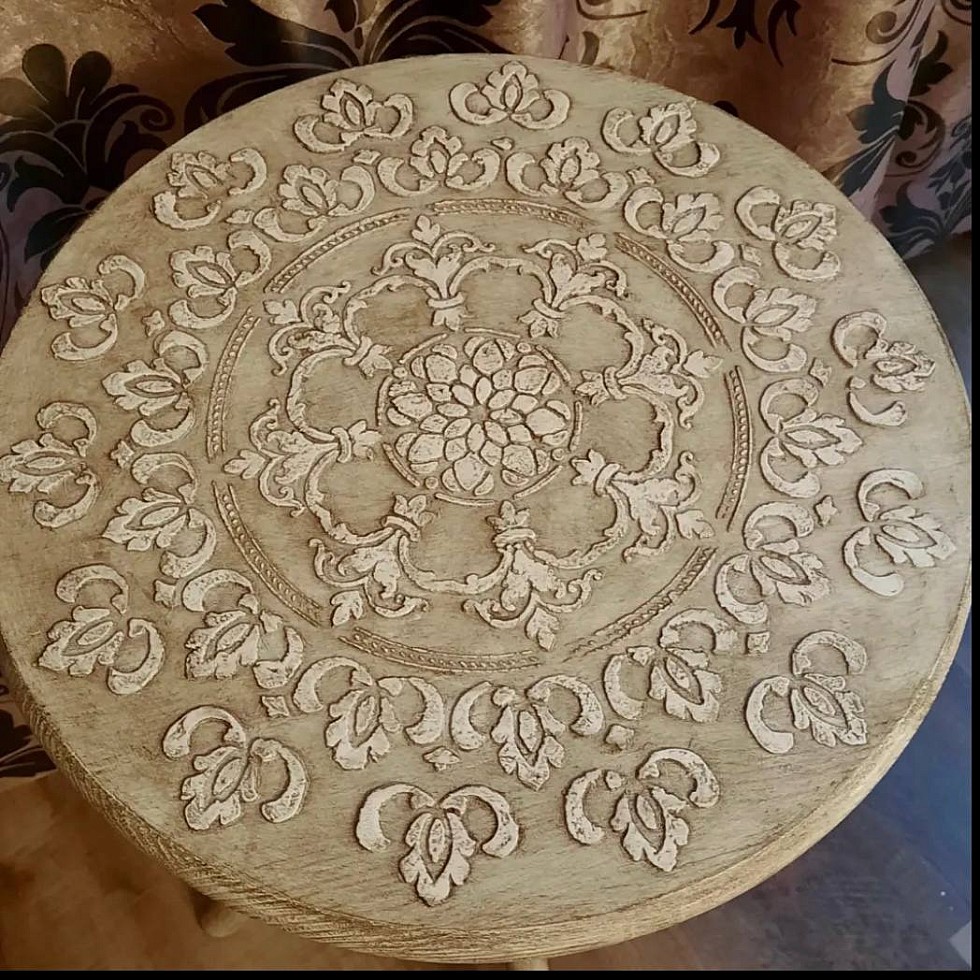 Если хочешь сразу шикарный эффект, надо купить этот трафарет, что я и сделала! Декорировала столик, получилось идеально! Трафарет достаточно плотный, очень хорошо лежит на поверхности, я даже ничем не фиксировала. А потом я использовала этот трафарет для декорирования тумбочки. Получилось тоже прекрасно. Теперь мой любимый трафарет! И меня совершенно покоряете упаковка - не просто в конверте или пакете, а специальная папка из оргалита для хранения.