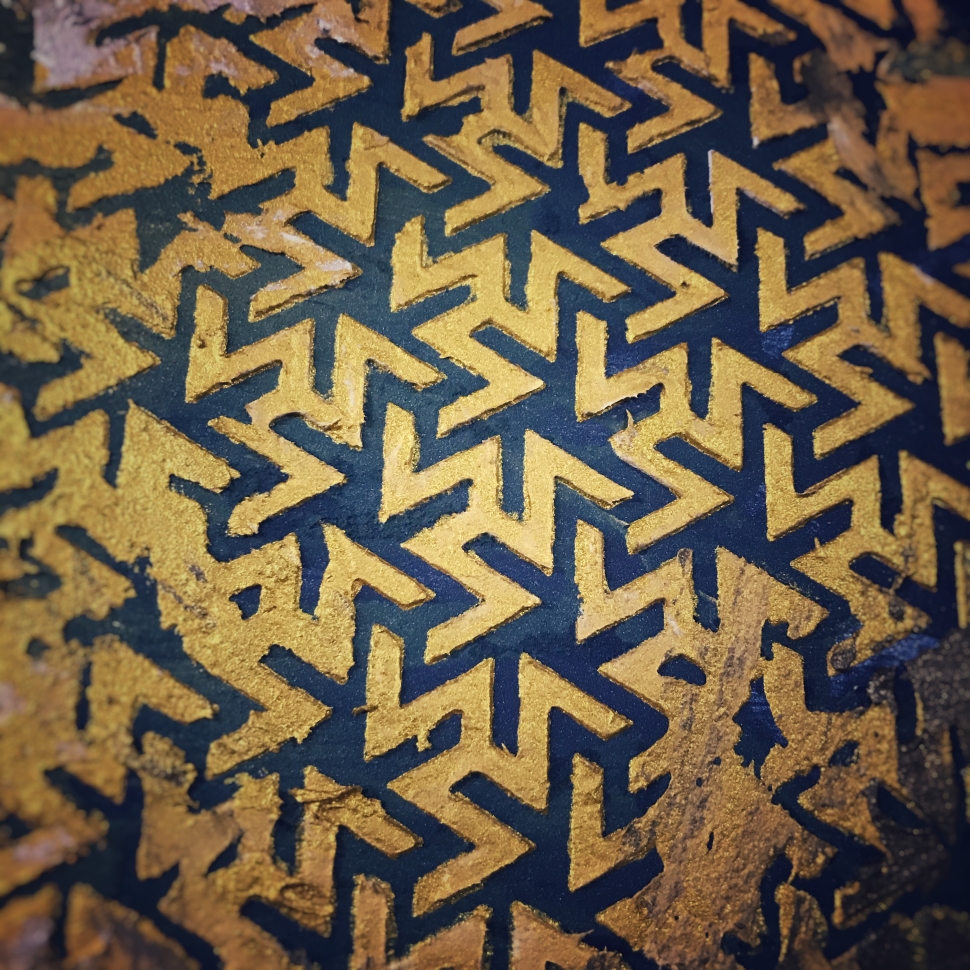 Этот трафарет идеально стыкуется в бесконечном раппорте, брутальный стиль, прекрасен для мужских работ с имитацией фактур железа, камня, окислов и ржавчины в стиле лофт.